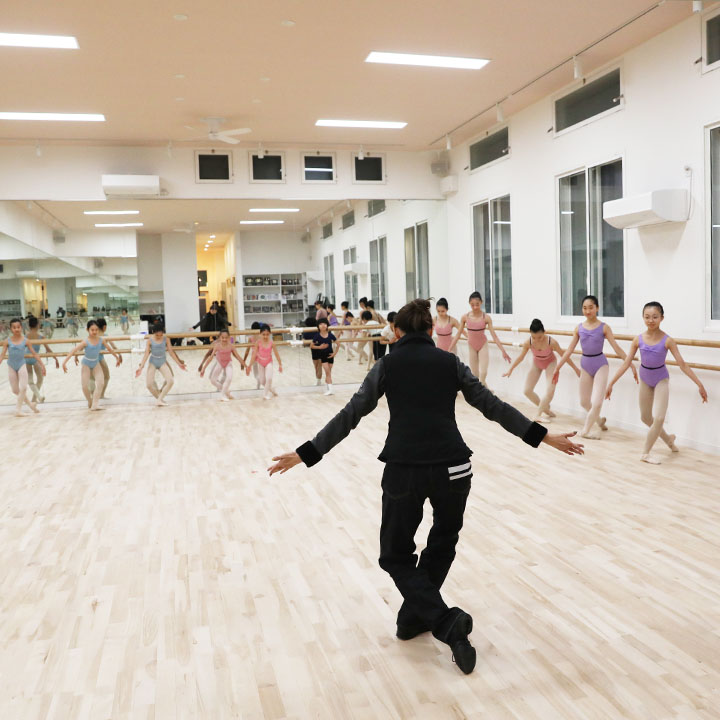 真新しいスタジオは3面鏡張りの広々とした環境。高い天井からは光が豊かに差し込み、床はバレエに適したしなりを生む無垢材を使用して足に優しい設計に。レッスンに集中できる設備を整えた最新のスタジオです。